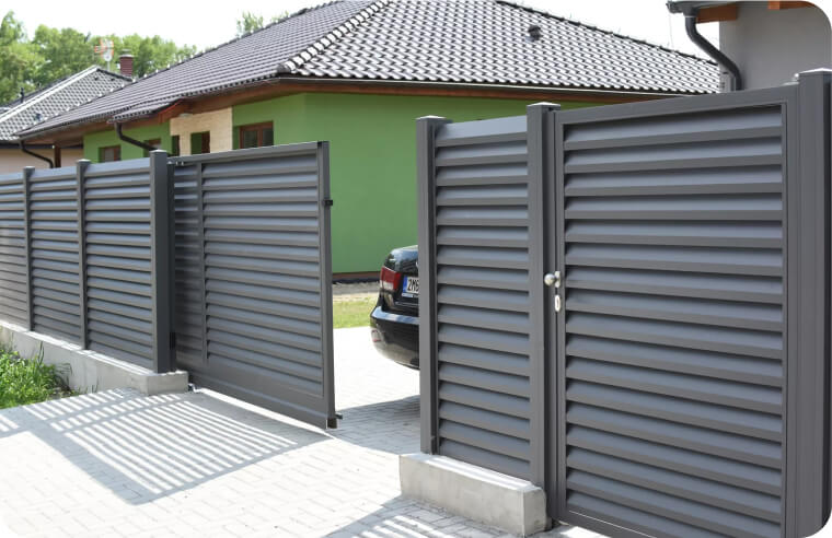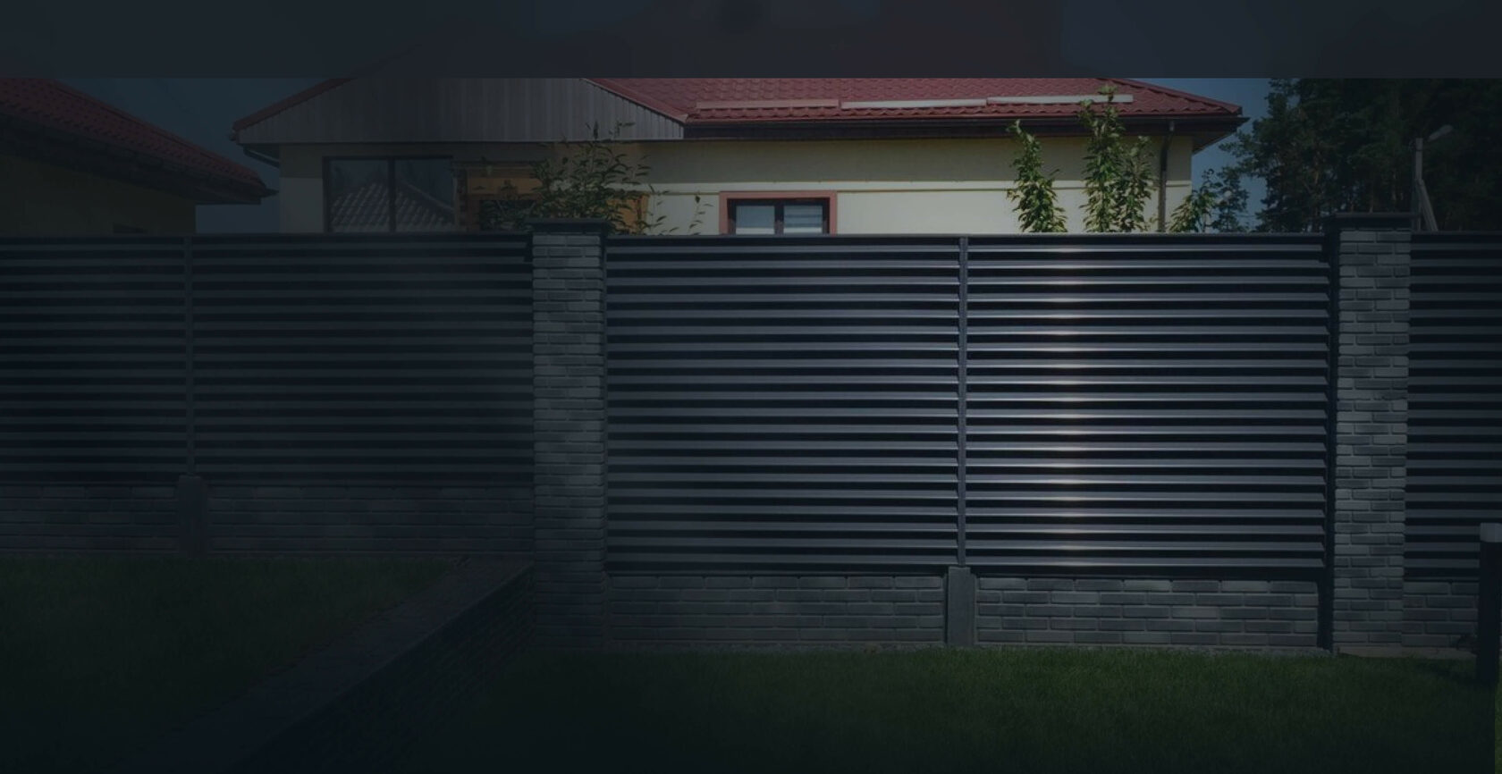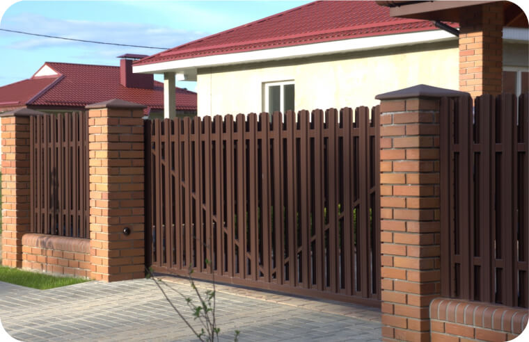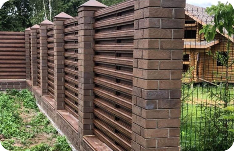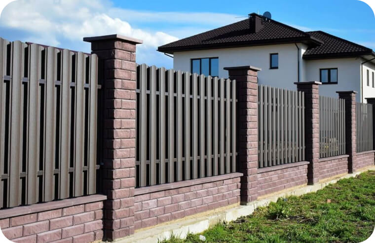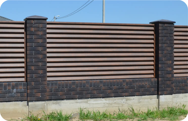 Забор жалюзи (из ламелей) на кирпичных столбах